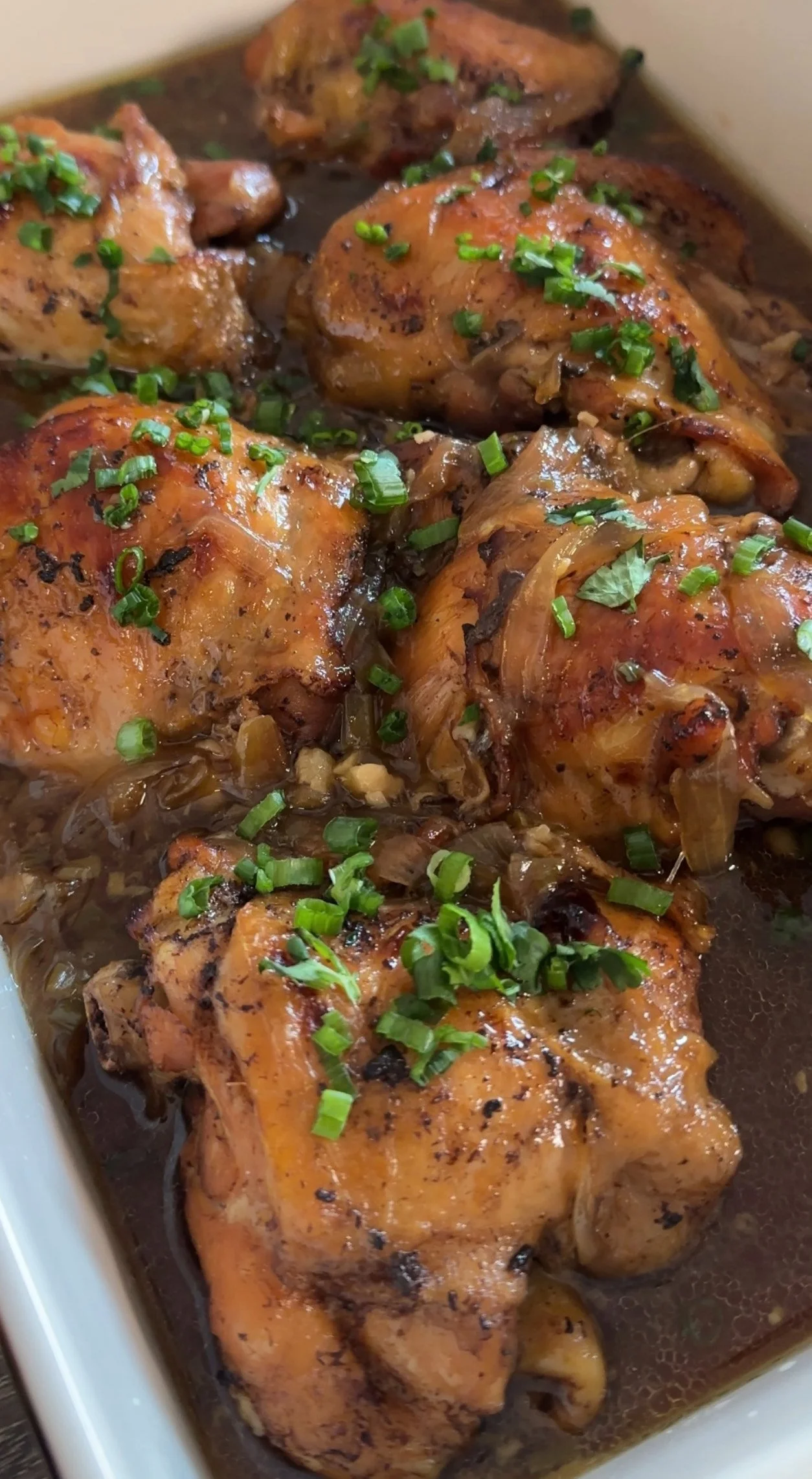 6. Transfer the broiled chicken to a serving dish, pour the reduced sauce over the top, and sprinkle with the sliced green onion tops. Serve hot with steamed white rice and Hawaiian mac salad for a complete island-style meal.