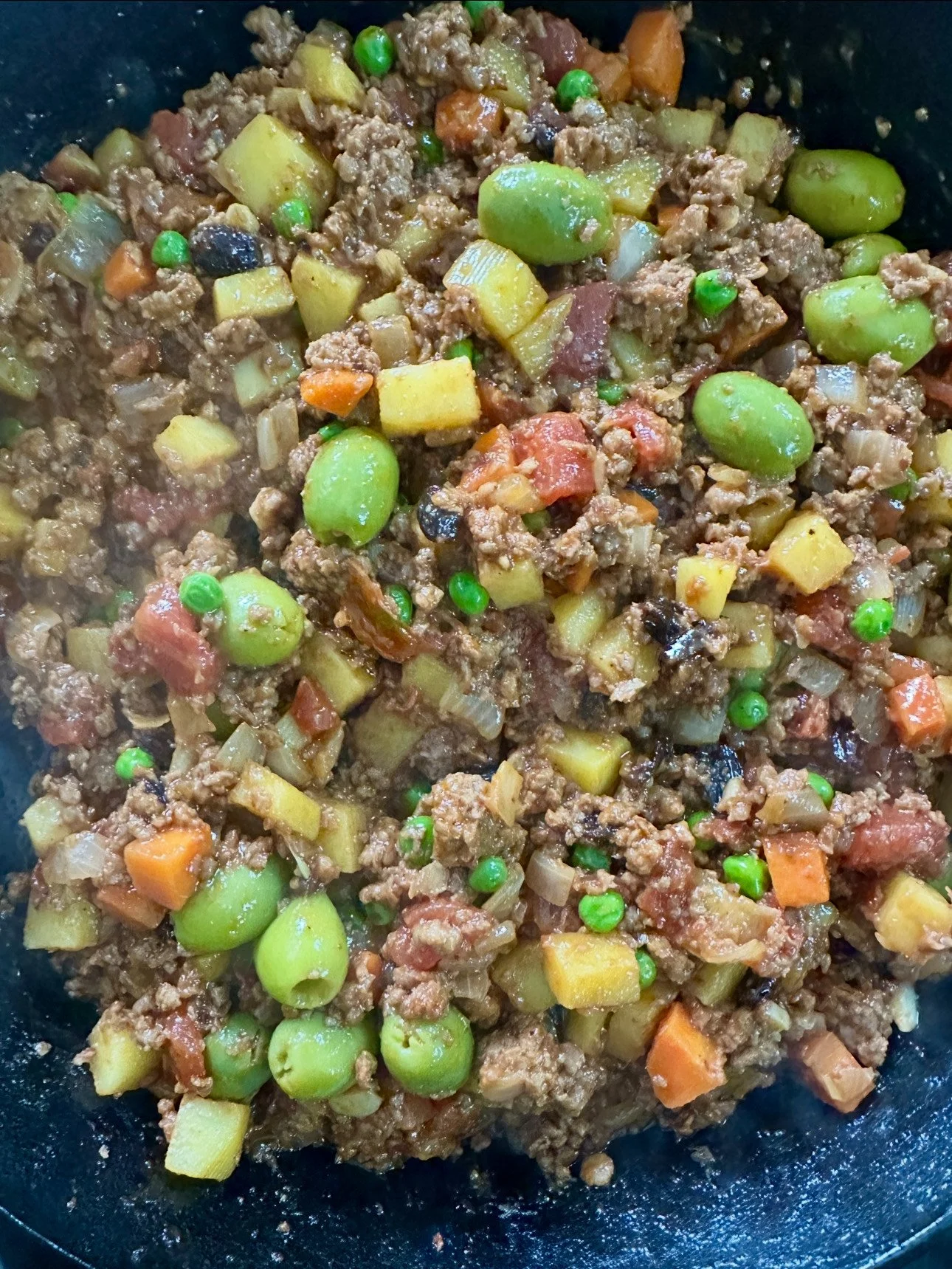 I can count on one hand all the dishes my dad would make when I was growing up. Filipino picadillo was something I would always look forward to him making because it was packed with flavor. This dish is also known as giniling, the tagalog word for ground meat. This is a super easy one pot meal. It’s a fantastic blend of Filipino and Spanish flavors, and if you don’t like raisins and olives, leave them out.