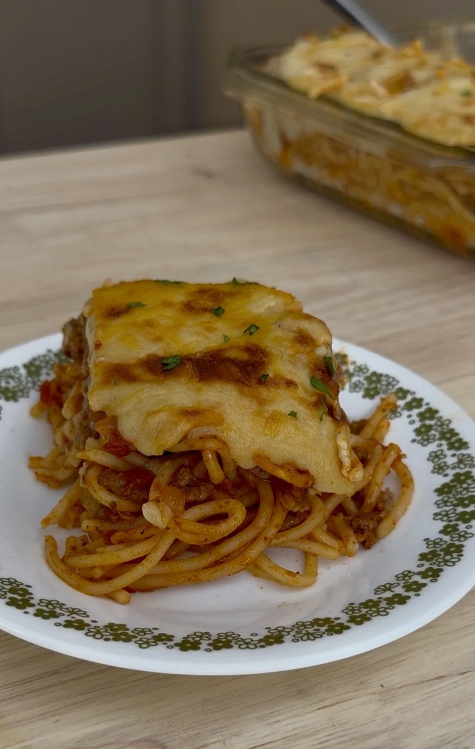 What makes Filipino spaghetti different from traditional Italian spaghetti is its signature sweet-style sauce, usually made with banana ketchup, tomato sauce, sliced hotdogs, and ground meat. In this baked version, everything gets topped with melty cheese and finished in the oven until bubbly and golden.
